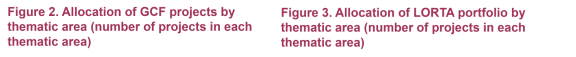 Now I would like to look at the eight results areas[1], defined through the GCF’s Integrated Results Management Framework (IRMF). In order to help refine the funding proposal, in particular with regards to the selection of impact and outcome indicators and the development of the project’s logframe, project teams are asked to identify results areas in the FP template. Each project needs to select at least one GCF result area it covers. A project can fall under multiple results areas from the adaptation and mitigation themes. Figure 5 shows the current distribution of projects under the LORTA window across the eight GCF results areas, whereas Figure 4 shows that of the overall GCF portfolio of projects. The two Figures demonstrate that there is a great similarity between the LORTA and overall portfolio of the GCF, in terms of results areas coverage.