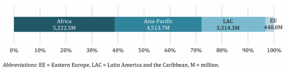 In terms of geographical coverage and balance, based on the B.37 forecast, Africa stands to be the greatest beneficiary with the largest share of the aggregate GCF portfolio with USD 5,222.5 million (38 per cent), followed by the Asia-Pacific with USD 4,513.7 million (34 per cent), Latin America and the Caribbean with USD 3,314 million (24 per cent), and Eastern Europe with USD 4408 million (4 per cent), as seen in Figure 2 below.