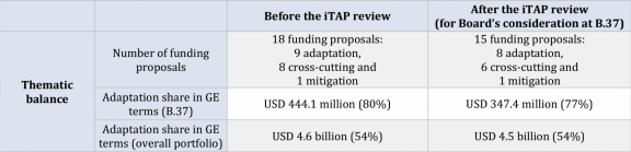 Table 3: Thematic composition of B.37 funding proposals in relation to GCF aggregate portfolio