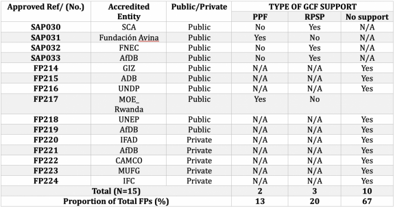 Table 2. Type of Support Received by Entities from GCF