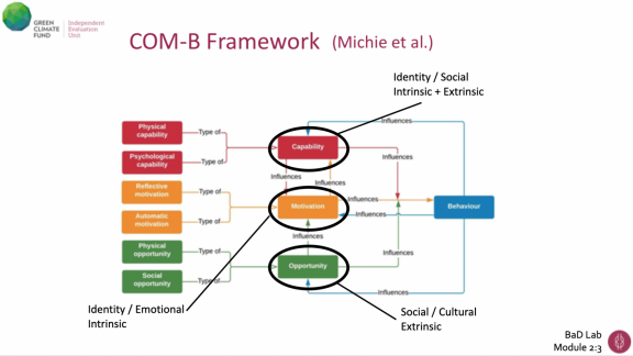 Part 2 presents factors that influence a person’s decision-making framework, and breaks down behaviour according to the COM-B Framework of capabilities, opportunities, and motivation, creating pathways to build new behaviours. Mapping out the COM-B features found within the scope of a GCF project helps to support alignment of the individual or household behaviours alongside the project’s proposed activities, in order to strengthen the sustainability of its impact and effectiveness.