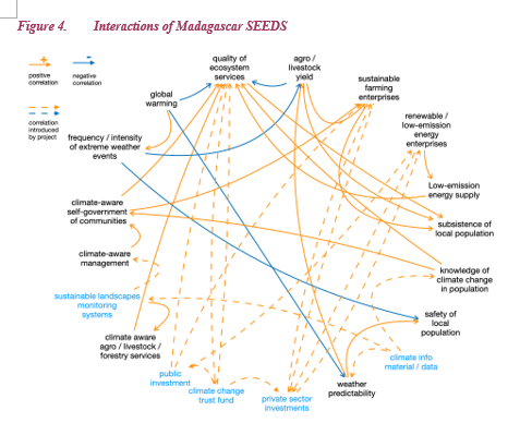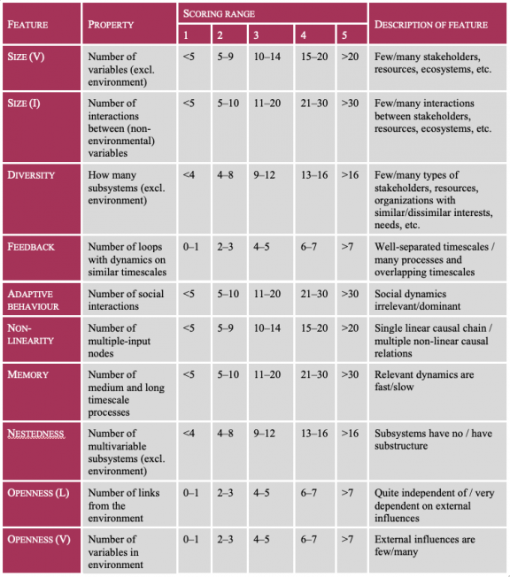 Conceptually, the social–ecological economic dynamic systems (SEEDS) tool deploys mathematical tools of complex networks and non-linear dynamics, to inform measures of complex systems’ features that apply to climate projects and programmes. Each feature can be assessed from the variable/interaction representation of SEEDS as follows: