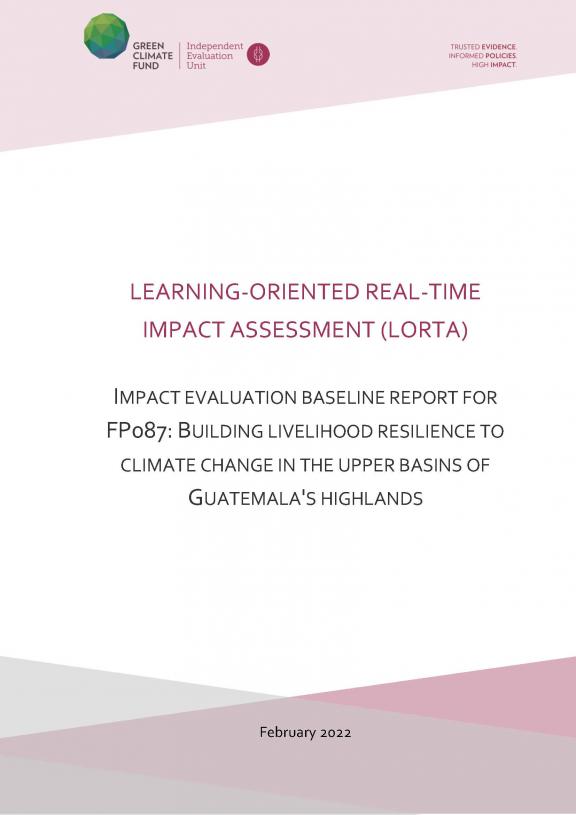 This document is the baseline report for the impact evaluation of the project FP087 "Building livelihood resilience to climate change in the upper basins of Guatemala"s highlands". The report outlines the theory of change of the project intervention as well as the evaluation questions and indicators.