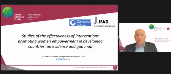 Dr. Prowse was joined by Sabina Singh and Lovely Tolin of the Campbell Collaboration. The IEU, IFAD, and the Campbell Collaboration are working together on this evidence review on women's empowerment and gender considerations in climate interventions.