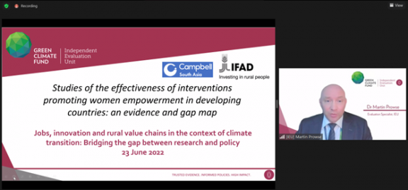 IEU Evaluation Specialist Dr. Martin Prowse contributed to a session of the Jobs, Innovation, and Value Chains in the Context of Climate Transition Conference organized by the International Fund for Agricultural Development (IFAD). The event was held on 23 June 2022 at 9 AM CEST and focused on Women’s Empowerment for Rural Transformation.