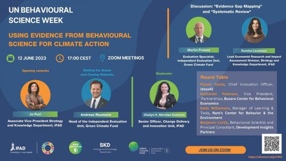 During the 2023 UN Behavioural Science week, the IEU, together with IFAD, will organize the session "Using evidence from behavioural science for climate action."