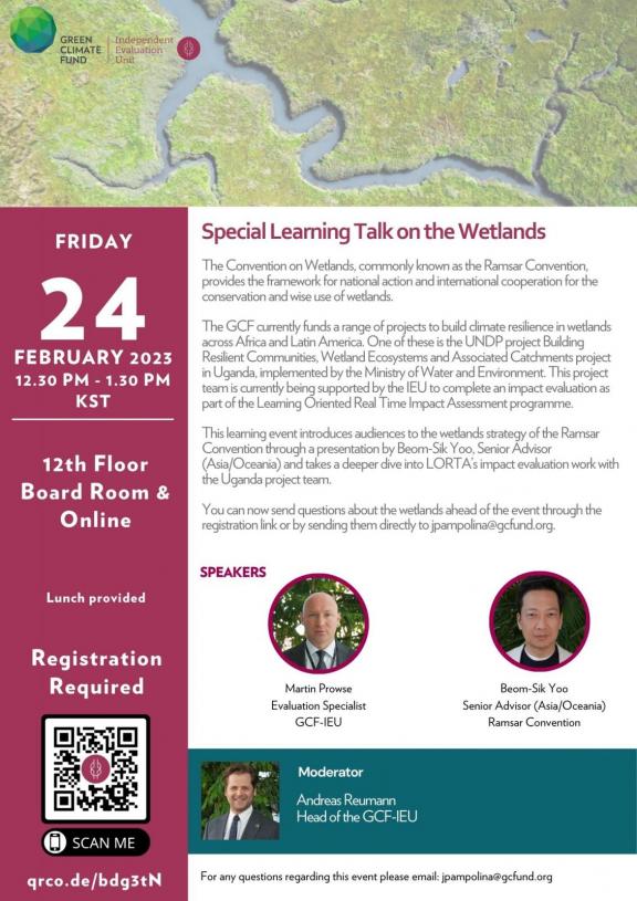 These insights were put into greater focus with a presentation by Dr Martin Prowse, Evaluation Specialist at the IEU, on the GCF’s involvement in the wetlands. The GCF currently funds a range of projects to build climate resilience in wetlands across Africa and Latin America. These projects are worth over USD $165 million and will affect the lives of over 5 million people.