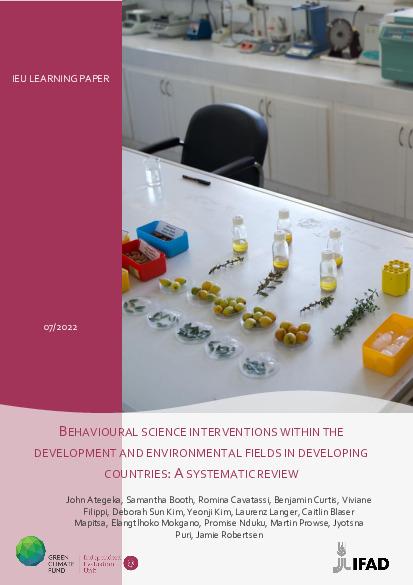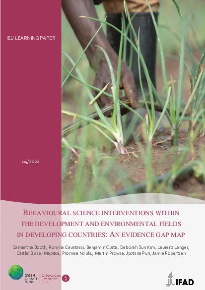 The approach paper clarifies the objectives of the review, the methods applied, and the criteria for inclusion and exclusion of studies. The evidence review and associated brief consolidates evidence on behavioural science interventions that encourage and support environmental and development outcomes in non-Annex I countries. It highlights the available evidence on a broad set of behavioural science interventions and their affects.