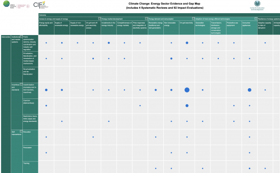 The evidence gap map on energy details the landscape of studies and inform the scope of a subsequent systematic reviews.