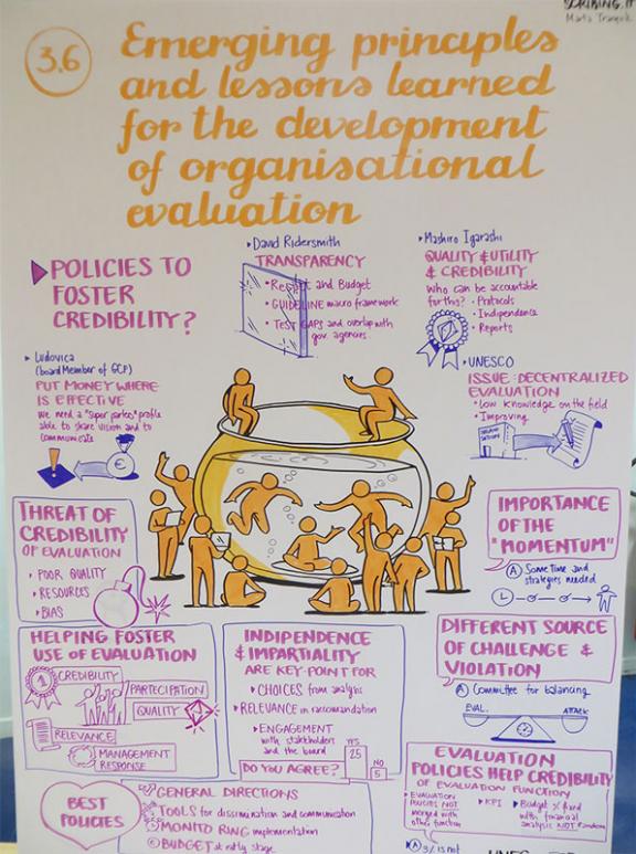 Another question asked of the panel was to describe what helped foster the use of evaluations. One delegate said for evaluations to be useful they need to be independent and well discussed with management and stakeholders. Delegates also agreed that data used in evaluation should be evidence-based to enhance credibility. Panelists agreed that evaluations should not be critical, but rather, identify problems and suggest solutions. One participant said the participation of key stakeholders is very important, suggesting one way to do this is to have a reference group. This requires a large investment, but it can ensure evaluations are useful and relevant. Communication with all stakeholders is also critical. For another participant, it was vital that the use of evaluations was explained to all the stakeholders involved. Other issues raised during the discussion included how evaluation policies reflect an organization’s culture, how to ensure quality in evaluations, how to ensure the quality of decentralized evaluations, the need to strengthen monitoring and evaluation and the importance of building capacity for good data collection within projects. All of this valuable information is important grist for the IEU mill. The knowledge gained from sharing ideas, learning how other specialists approach issues, and hearing people’s different perceptions on what constitutes credibility, usefulness and impartiality in an evaluation, is extremely valuable to IEU as it begins to roll out a draft evaluation policy for the GCF. With this knowledge, IEU will be able to produce a more informed, more inclusive policy that will better guide future evaluations of the GCF’s climate actions.