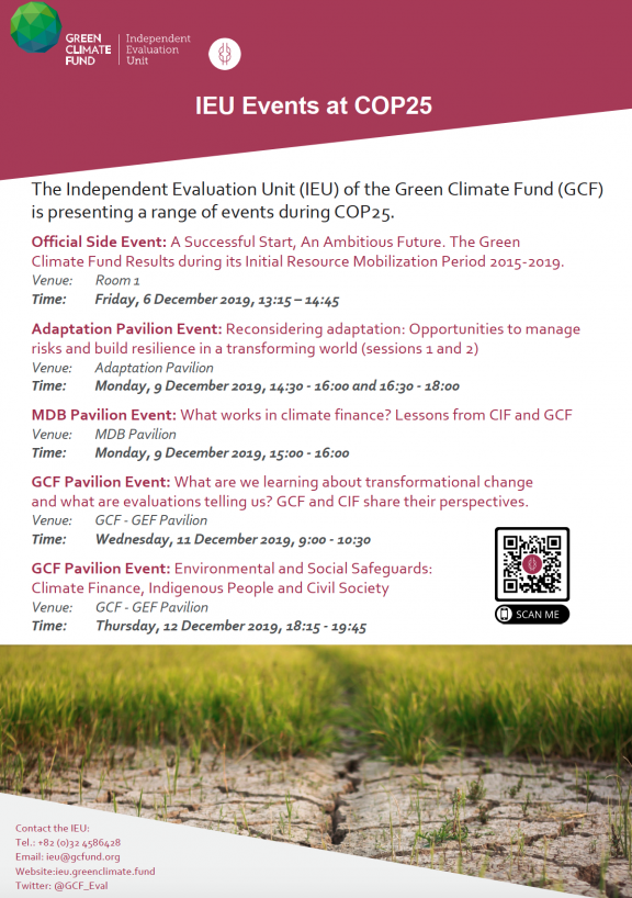 It will do this at COP25 with a range of events dealing with recent evaluations about GCF’s effectiveness and inclusiveness, and by comparing findings with other independent climate evaluation offices.