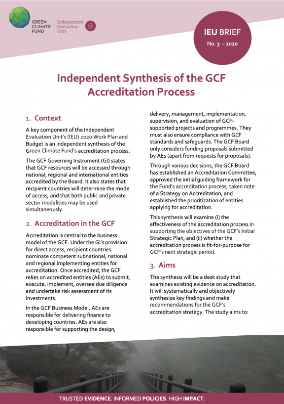 The IEU announces the release of the approach paper on the independent synthesis of the GCF accreditation function.