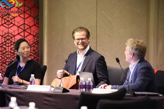 In the plenary session Evaluation Headlines Live: Evolving Role of Evaluation in Preparing for an Uncertain Future, Andreas Reumann discussed how organizations and evaluators are adapting to address uncertainties in development, particularly those posed by climate change and digital transformation. The session emphasized the importance of considering climate co-benefits and improving the density of evidence related to climate impacts, such as water, land use, and energy efficiency. It also highlighted the critical role of evaluation in navigating the uncertainties caused by climate change and technological innovation, while addressing gaps in evidence and skills necessary for successful transitions.