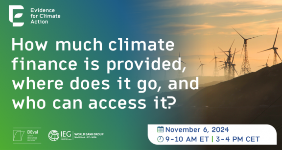 The German Institute for Development Evaluation and the Independent Evaluation Group invite you to join Evidence for Climate Action (E4CA), a series of conversations in the lead up to COP29 on the latest evidence on effective climate action.